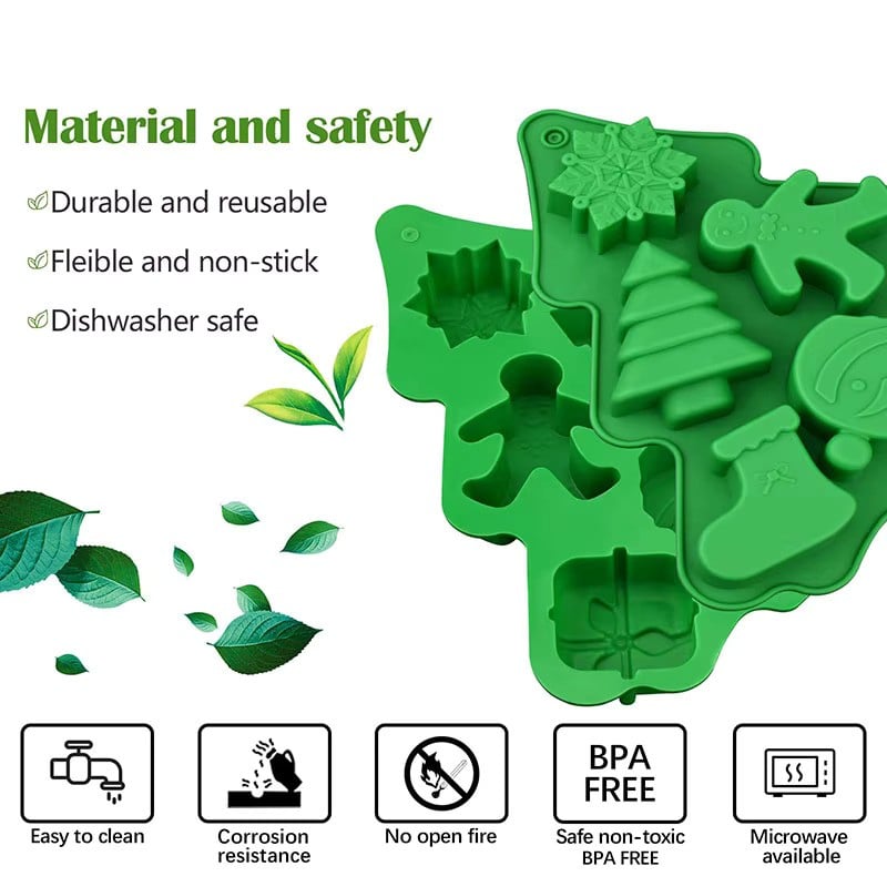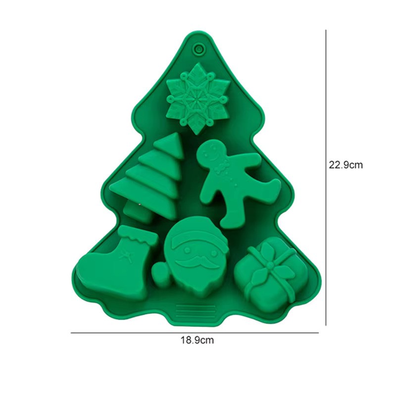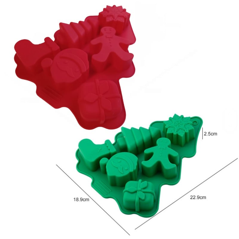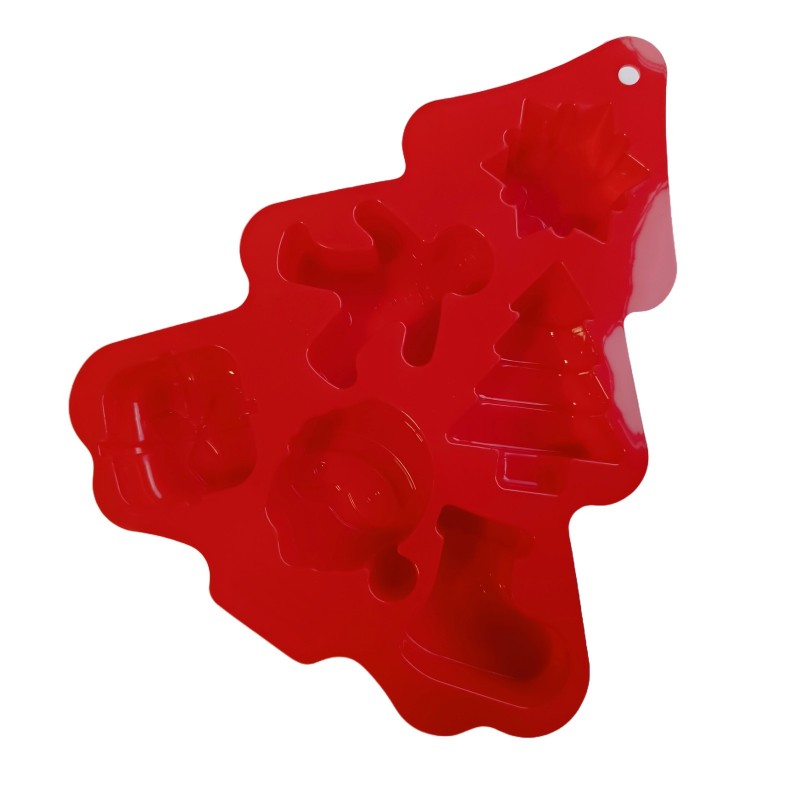 Creeaza cele mai frumoase deserturi de sarbatori cu aceasta forma din silicon alimentar, modelata sub forma unui brad de Craciun si prevazuta cu 6 cavitati tematice: om de turta dulce, cadou, bradut, ciorap de Craciun, Mos Craciun si fulg de nea. Flexibila, durabila si antiaderenta, aceasta tava este perfecta pentru ciocolata, jeleuri, prajituri mici, sapunuri handmade sau decoratiuni comestibile pentru deserturi festive. O alegere ideala pentru familii, ateliere de Craciun si cei mici!